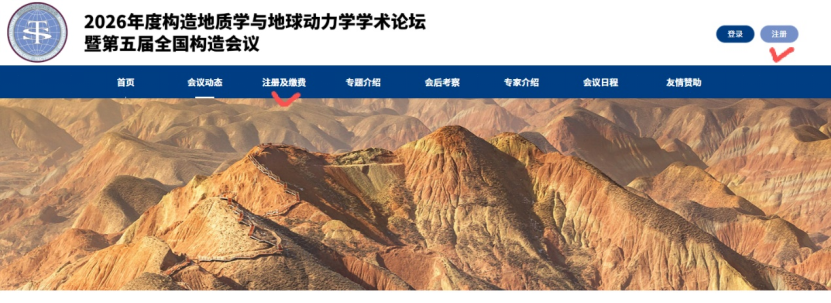 请登录会议官方网站(https://www.sgeodynamics2026.com/),点击首页右上角“注册”或者主要栏的“注册及缴费”按钮,填写注册信息。已完成注册的代表可直接登录账号。